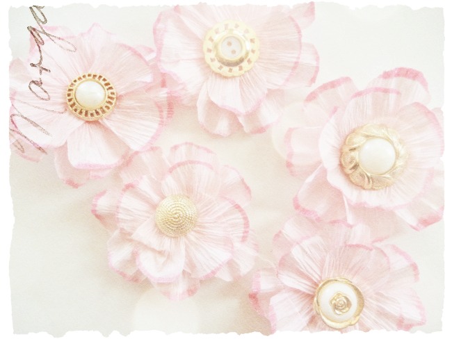 and flowers begin to bloom! I created these beautiful flowers, a variation of a flower by Melissa Frances, with Crepe Paper, DecoArt Glamour Dust Glitter Paint and some fabulous buttons from my Zeus and Zoe kit.