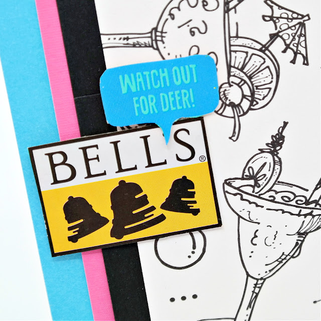 To add some fun texture to my page, I used a swiss dot cardstock under the photo. I applied pink chalk ink using a splatter stencil to mimic the condensation rings that often end up on the table when I'm enjoying an ice cold beer. The small "cheers," "heck yeah," and "beer" sentiments were cut from the super fun Mixology collection from Canvas Corp.