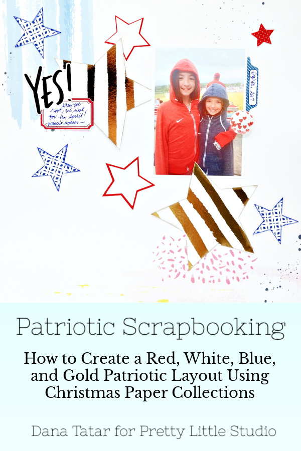 Hi! I'm sharing a red, white, and blue patriotic scrapbook layout that I created using Christmas and winter collections for Pretty Little Studio today. The Frosty and Friends, Christmas Cheer, and Glitter and Ice lines have red, and blue elements that are great for crafting all year long!