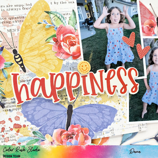 Hi! I'm sharing a scrapbook layout for Color Rush Studio today. I used the June Zesty Main Color Club Kit, which features the Simple Stories Simple Vintage Linen Market collection and embellishments from Color Rush Studio. My niece Nina always has a smile on her face and is ready for a good time. She absolutely loves posing for photos!
