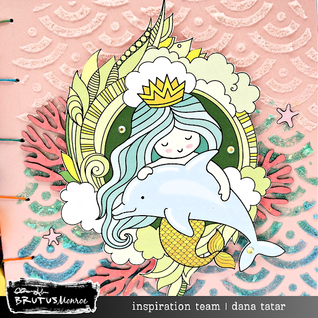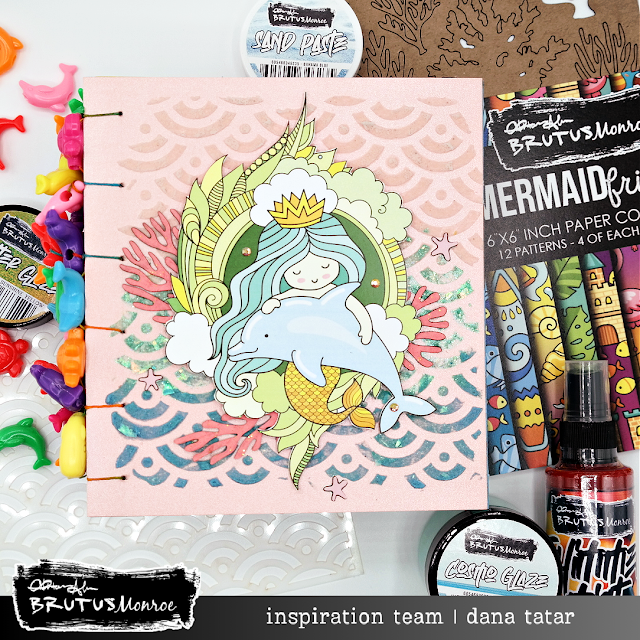 Hi! I used items from the Brutus Monroe Mermaid’s Tale release to create this sea-sational mixed media mini album. I look forward to the mermaid themed release every year. In addition to three paper collections, three new formulas of color mediums are available! If you're looking to add beachy texture to your projects in a summery color palette, this is the release you have been looking for!