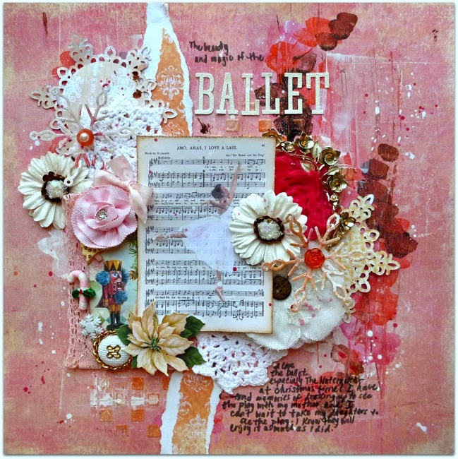 I also used one of Marivic's stunning handmade tags. The nutcracker on this tag was perfect for me because the ballet brings me so much joy, especially attending a performance of the Nutcracker. I found a beautiful printable image from the Gypsy Jingles Boutique to use as the focal point of my layout.