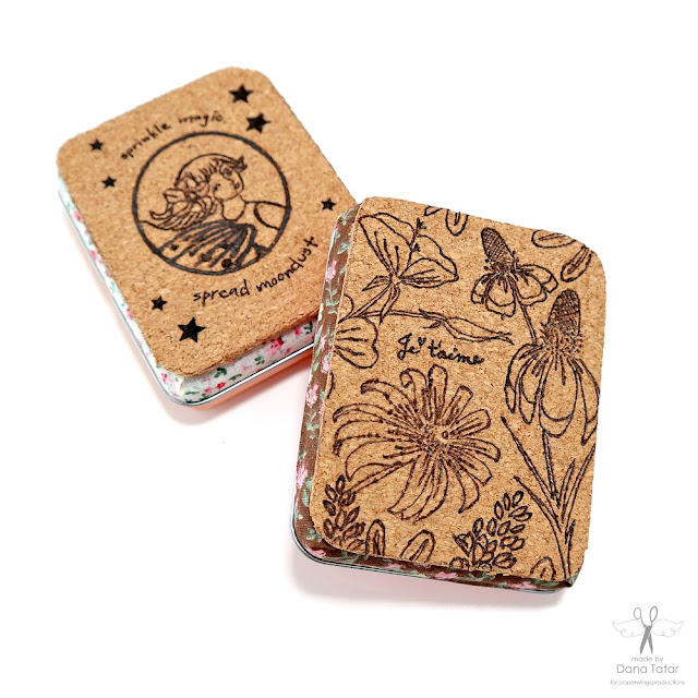 Hi! I'm sharing a fun way to alter metal tins on the Paper Wings Productions blog today. As both the sports season and school year come to a close, I find myself giving a lot of gift cards to the teachers and coaches that have helped my daughters over the year. Instead of tucking the gift cards into an envelope, I decided to upcycle some metal tins. I used some of my favorite Paper Wings Productions stamp sets and a wood burning tool to embellish pieces of cork to top the tins. I love using my wood burning tool on soft materials like cork and leather. I'd love to have you stop by the Paper Wings Productions blog for my tutorial!